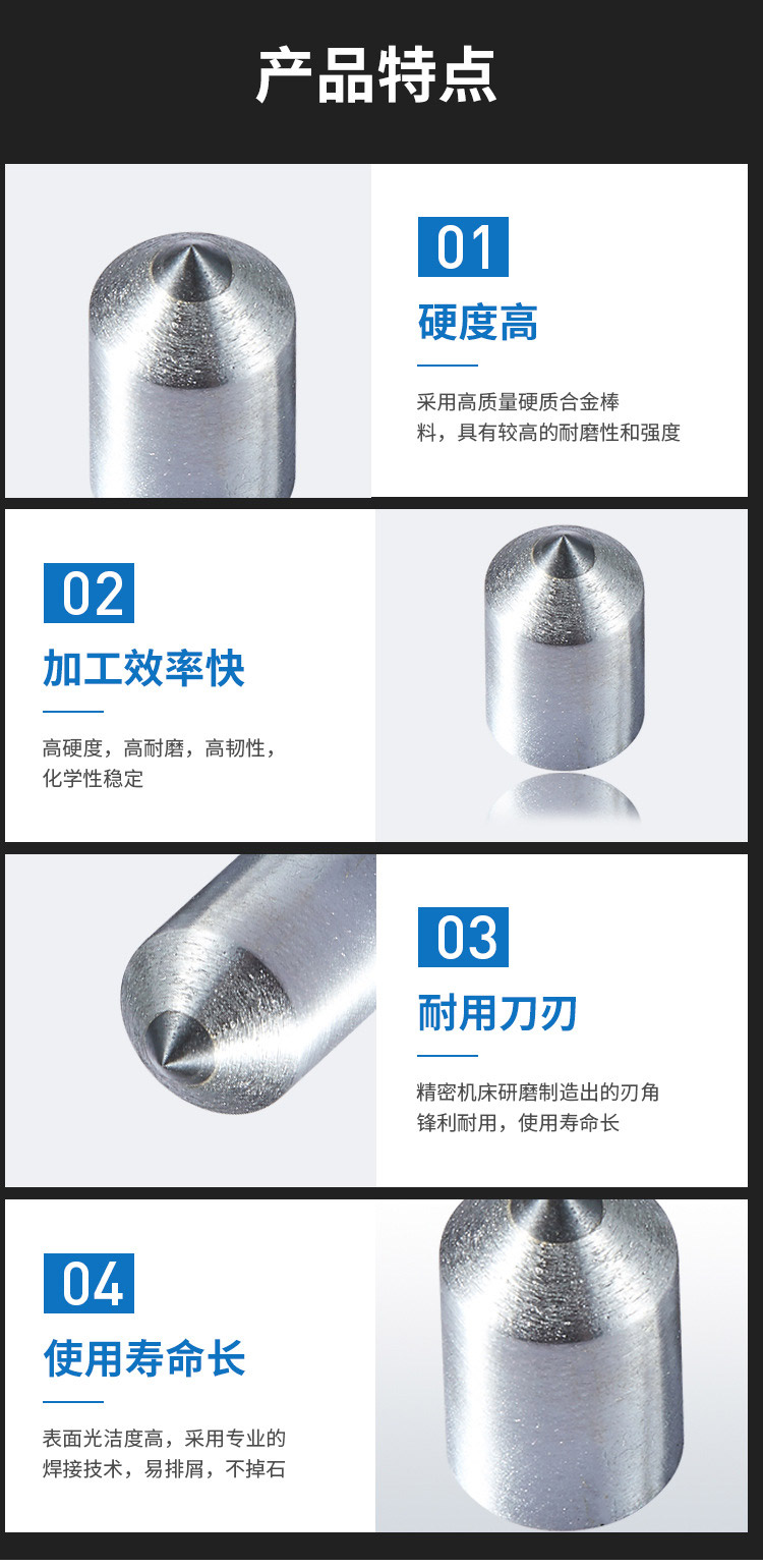 1.硬度高:采用高質(zhì)量硬質(zhì)合金棒料,具有較高的耐磨性和強(qiáng)度;