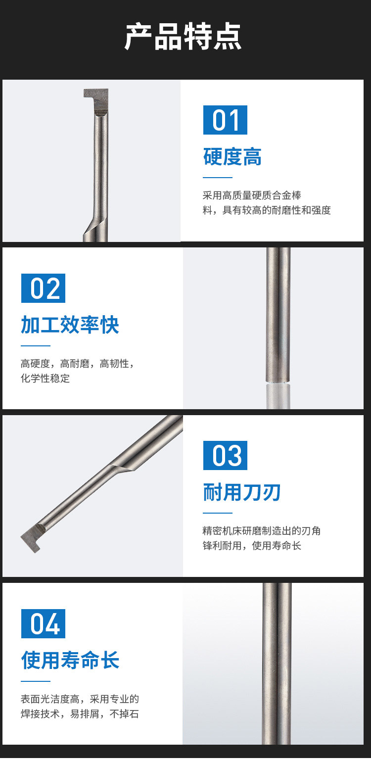 1.硬度高:采用高質(zhì)量硬質(zhì)合金棒料,具有較高的耐磨性和強(qiáng)度;