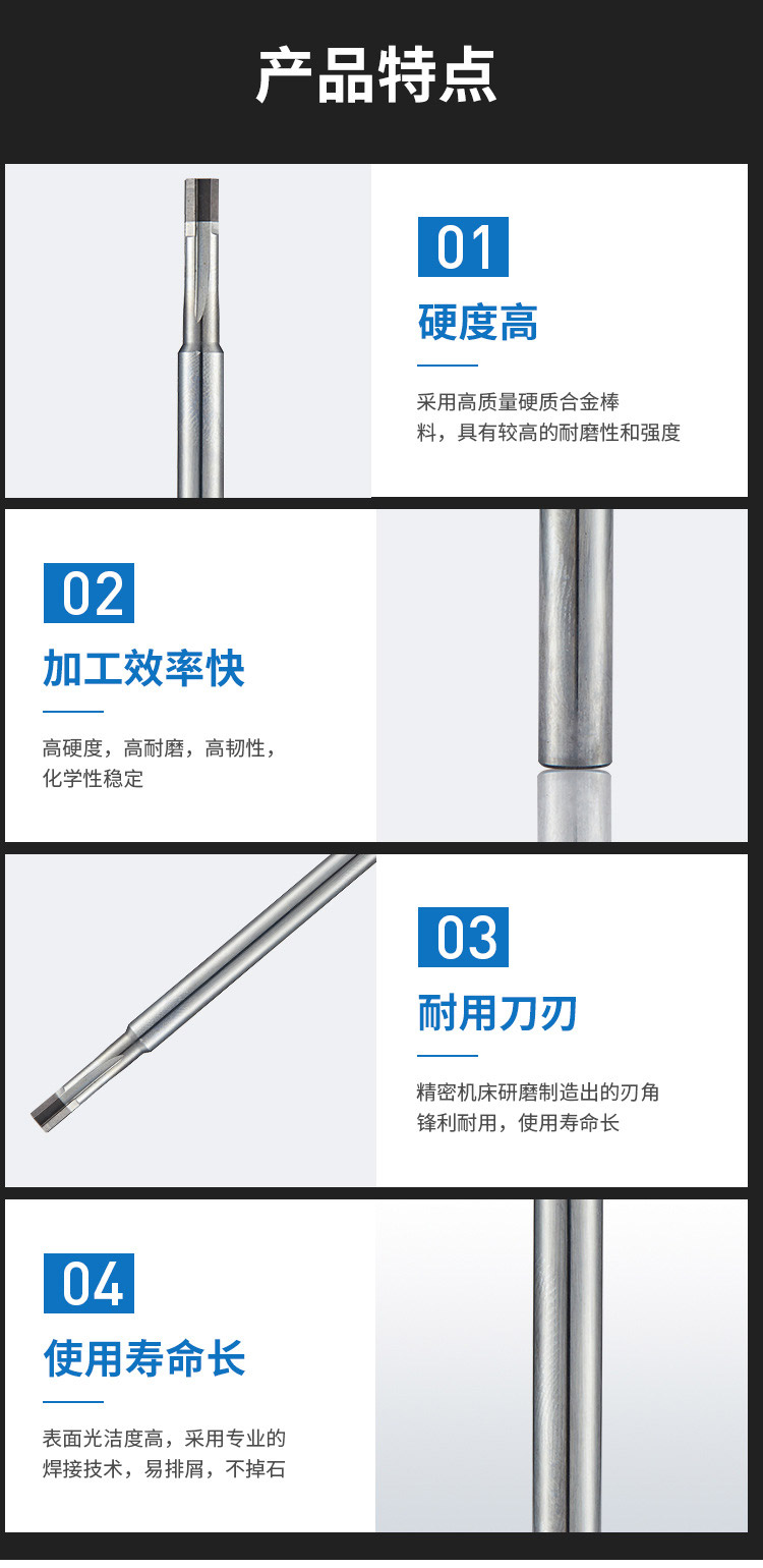 1.硬度高:采用高質(zhì)量硬質(zhì)合金棒料,具有較高的耐磨性和強(qiáng)度;