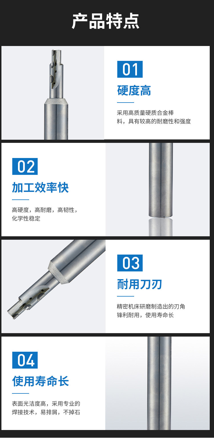 1.硬度高:采用高質(zhì)量硬質(zhì)合金棒料,具有較高的耐磨性和強度;