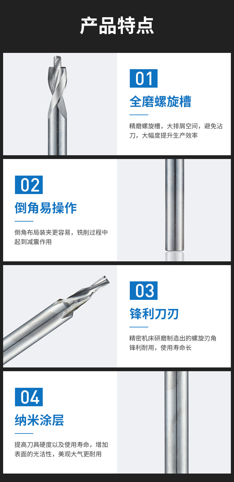 3.鋒利刀刃:精密機床研磨制造出的螺旋刃角,鋒利耐用,使用壽命長;